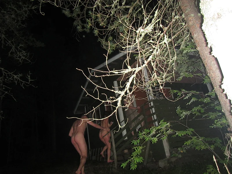 His photography style varies from straight flash party snapshots to calm and intimate portraits. The locations vary from an illegally built plywood sauna in the middle of Helsinki to the peaceful countryside, summer houses and snowy backyards.